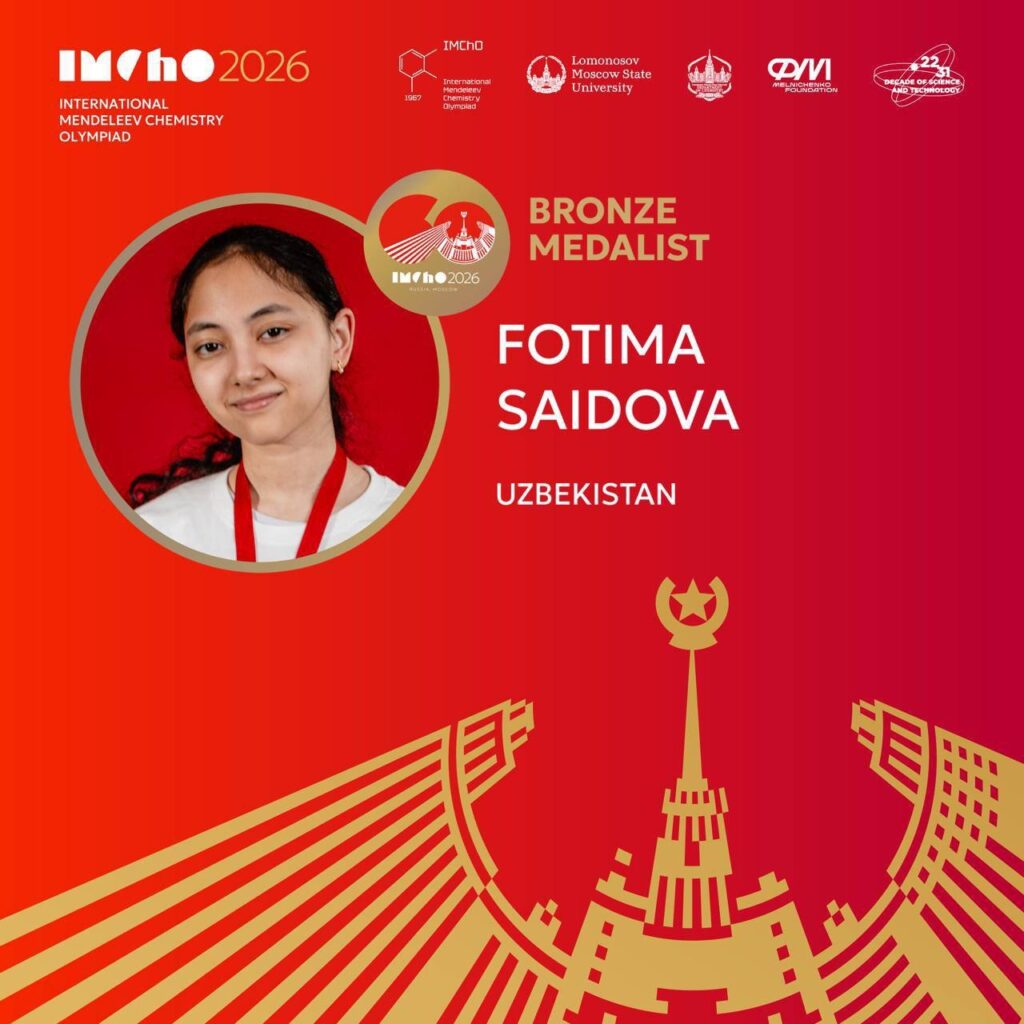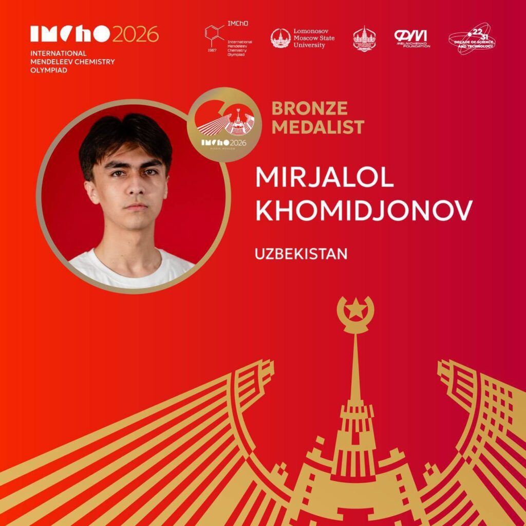 📢 60-Xalqaro Mendeleyev kimyo olimpiadasida O‘zbekiston terma jamoasi 11 nafar ishtirokchi bilan qatnashib, 11 ta medalni qo‘lga kiritdi.