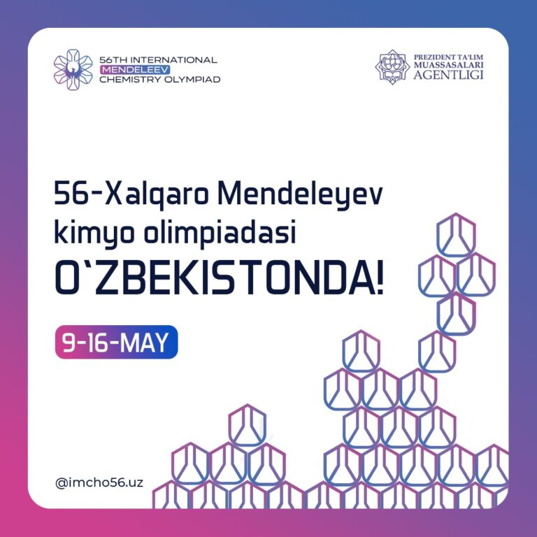 Joriy yilning 9-16-may kunlari bo‘lib o‘tadigan 56-Xalqaro Mendeleyev kimyo olimpiadasiga O‘zbekiston mezbonlik